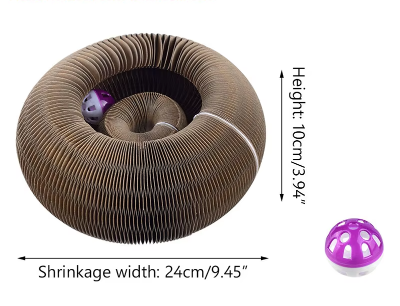 Tillverkad i tjockt, slitstarkt pappmaterial och med en rolig boll för extra interaktiv lek. Den unika, vikbara designen gör den både platsbesparande och mångsidig – din katt kan klösa, jaga, leka eller vila på den.